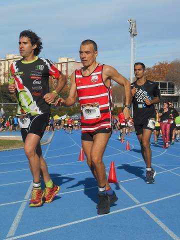 " Otro problema de la prueba es que se disputa en una pista de atletismo, así que de entrada si todo va bien vas a dar más de quinientas vueltas, si pensamos que habrá ciento cincuenta corredores en ella, estas continuamente buscando la cuerda de la pista. Metidos ya en la madrugada y con los abandonos que se van produciendo la situación mejora, pero el aspecto mental es todo para aguantar un día completo corriendo en tan poco espacio."