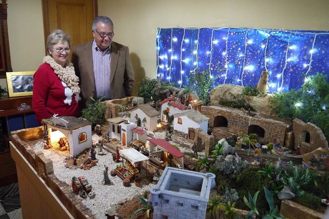 El alcalde de Oropesa del Mar, Rafael Albert ha sido invitado por Pilar Martí Escuriola a ver el Belén que tiene expuesto en su casa y que instala desde hace más de 35 años. Pilar comenta que es todo artesanal y que en su construcción le ayuda su familia, en especial su marido que era carpintero.