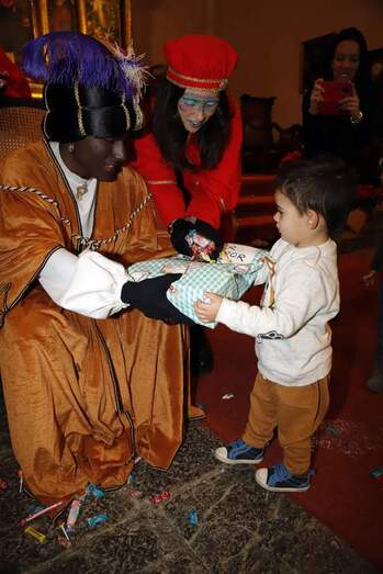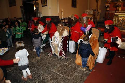 Una vegada finalitzat el protocol institucional els tres mags i el seu seguici, al que acompanyaven desenes de persones, es van dirigir a l'Esglèsia de l'Assumpció, lloc en el qual els esperaven, ansiosos, els xiquets i xiquetes. Allí, Melcior va dedicar unes paraules als assistents i després els Mags 'Orient, amb l'ajuda dels seus acompanyants, van lliurar els regals complint els desitjos expresats a les cartes rebudes en les darreres setmanes.