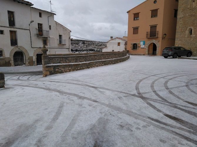 La nieve y el hielo han hecho acto de presencia en los municipios del interior de la provincia de Castellón. El temporal de frío y nieve que azota la península ibérica ha dejado las primeras nevadas del año en las comarcas del Alt Maestrat y Els Ports, donde localidades como Vilafranca, Castellfort o Ares del Maestrat han amanecido cubiertas de un manto blanco.