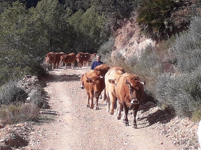 Las vacas de la ganadería de Fernando Robles van desde Vistabella del Maestrazgo y utilizando las vías pecuarias que unen los dos parques naturales: el de Penyagolosa y el del Prat de Cabanes-Torreblanca