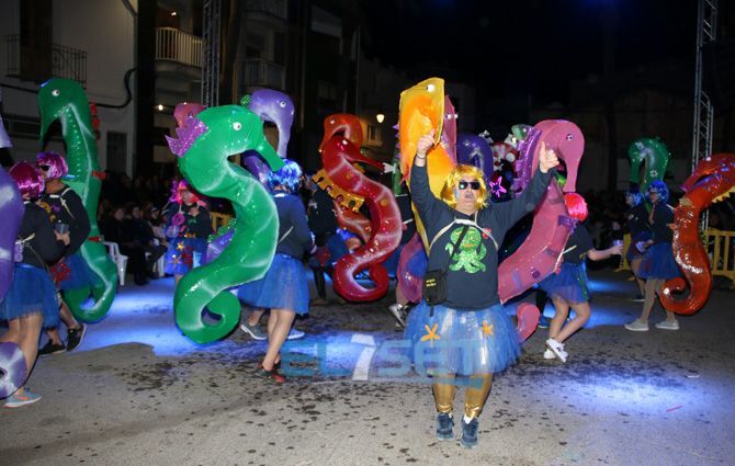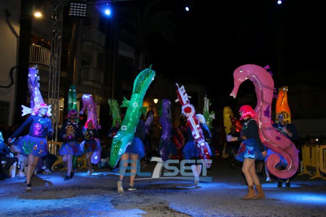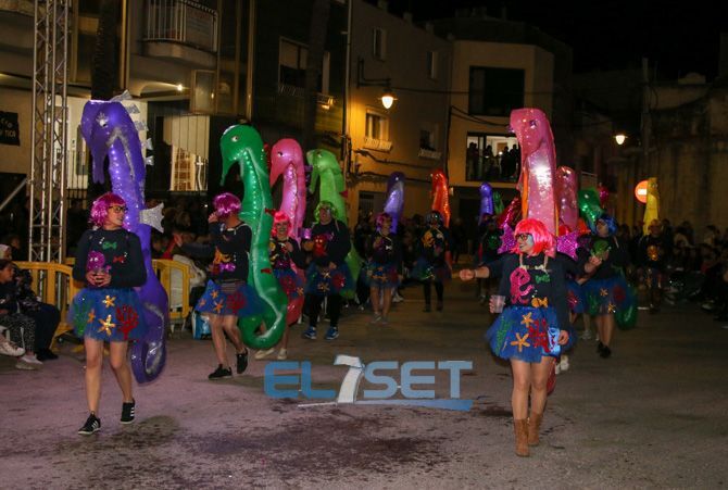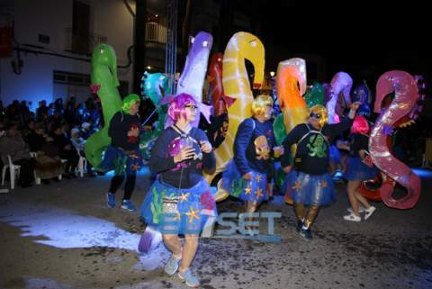 Alcalà de Xivert vivió en la noche del sábado el momento más esperado para todos, el Gran Desfile de Carnaval. Una agradable temperatura acompañó a los participantes y al numeroso público que se reunió en el sambódromo y a lo largo del recorrido para disfrutar del espectáculo que brindaron las collas.
