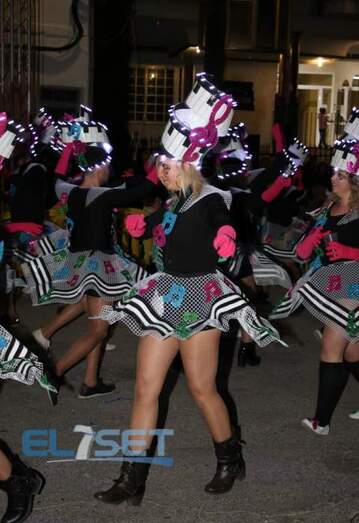 Cerrando el desfile de la noche, Som els que estem, la colla mas numerosa de este año y además los encargados de acompañar a la reina del Carnaval 2019, Patricia Llorens. Su disfraz estuvo inspirado en Paris al ritmo de Moulin Rouge.