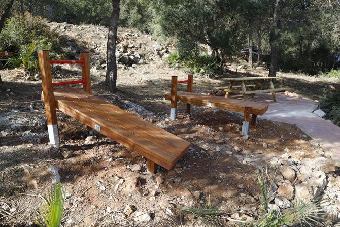 Una de las actuaciones más destacadas ha sido la que se ha llevado a cabo en la zona verde ubicada junto en la CV-160, donde se ha creado una área de descanso con un aparcamiento para bicicletas, una tabla de madera y taburetes y un circuito de entrenamiento con bancos de ejercicios físicos como abdominales, estiramientos o flexiones.