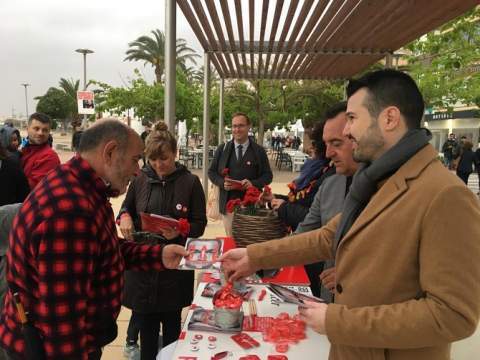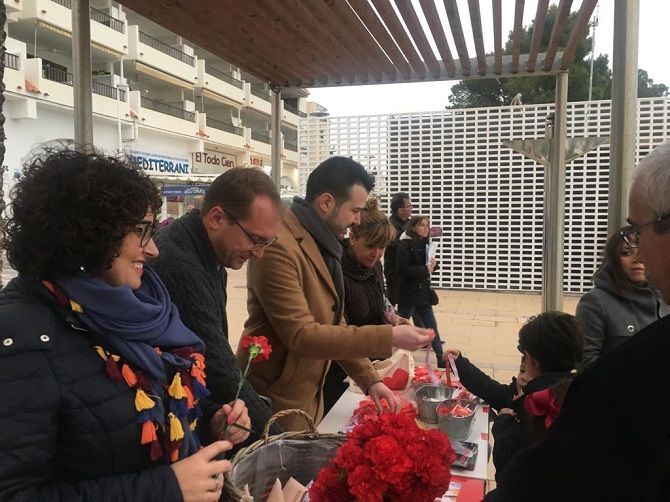 Los candidatos del PSPV-PSOE, Ernest Blanch, Susana Ros y Artemi Rallo, junto al candidato a la alcaldía de Alcalà de Xivert,Joan Ronchera, han hecho campaña en el paseo marítimo de Alcossebre, donde han repartido claveles y folletos con información sobre las propuestas del partido para las elecciones autonómicas  y generales.