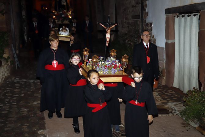 La pluja va donar ahir una treva, cosa que va permetre continuar amb normalitat amb la programació prevista per a aquesta Setmana Santa a Vilafamés. Després d'haver tingut que alterar el recorregut de la processó del Dijous Sant i del Via Crucis, i anul·lar la trencada de l'hora, anit es va poder portar a terme la processó del Sant Enterrament. Així, desenes de fidels van celebrar amb devoció i fe d'aquest acte, tan arrelat a Vilafamés, a pesar de les condicions climatològiques.