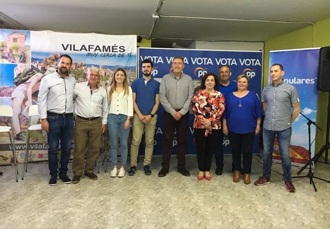 Les persones que acompanyaran a Marisa Torlà en el repte de recuperar l'alcalcía i fer realitat el projecte del PP para Vilafamés són; Manuela Balaguer, Francisco Javier Claus, Adrián Forcano, Pascual Lorenzo Puig, Andrés Tena, Fidel Porcar, Aida Llorens i Carlos Peris.
