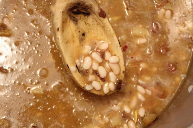 Como marca la costumbre de la jornada se elaboró el guiso tradicional de judías que luego todos degustaron.