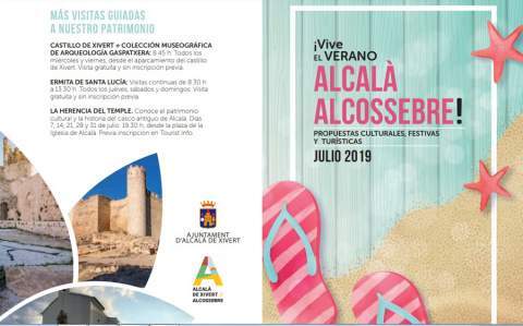 El calendario turístico, cultural y festivo de Alcalà-Alcossebre para este mes de julio presenta una amplia programación. Las actividades turísticas que se celebran durante todo el año, se ven incrementadas durante la temporada alta de verano por lo que, en este mes de julio, van a tener lugar actividades de senderismo a la luz de la luna, gymkana en familia, ruta teatralizada en el castillo de Xivert y ruta en bicicleta por lagunas de agua dulce. A estas actividades turísticas, hay que sumar las visitas guiadas al patrimonio local: todos los miércoles y viernes, en el castillo de Xivert, a las 8.45h y los jueves y sábados en la ermita de Santa Lucía, de 8.30h a 13.30h. Además, a través de la ruta guiada “La Herencia del Temple” pueden conocerse en detalles el patrimonio cultural y la historia del casco antiguo de Alcalà.