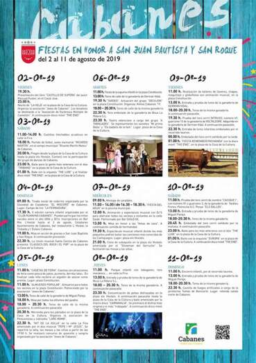 La localitat castellonenca de Cabanes celebrarà les Festes en honor a Sant Joan Baptista i Sant Roque del 2 a l'11 d'agost amb una gran varietat d'activitats dirigides a tots els públics.