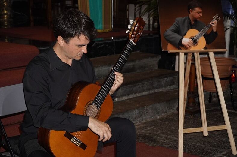 En concreto, el guitarrista y profesor del curso 'Manuel Babiloni' ha interpretado las obras 'Canciones populares catalanas' de M. Llobet, 'Castillos de España' de F.M. Torroba, 'La Catedral' de A. Barrios, 'Recordances n.º3 en La menor' de R. Beltrán, 'Inspiraçao' de A.A. Sardina o el vals venezolano 'La Negra' de A. Lauro.