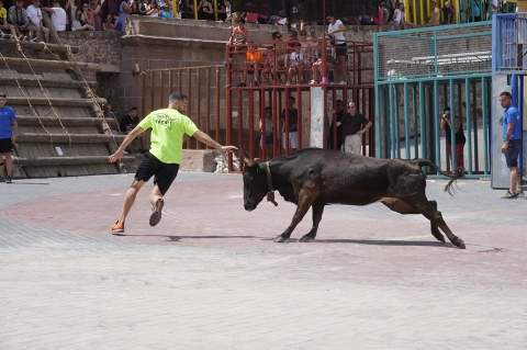 Las actividades taurinas han ocupado casi la totalidad de la programación festiva de hoy miércoles 14 de agosto, que se han iniciado con la tradicional entrada de toros y vacas de la manada de Jaime Tárrega y la posterior prueba en la zona de la plaza de la Font. Allí se han dado cita centenares de aficionados para disfrutar de esta jornada que ha empezado con un buen ambiente por las calles del recinto taurino.