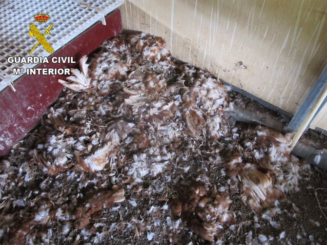 La Guardia Civil encontró en el interior de la explotación los cadáveres momificados de 100 gallinas