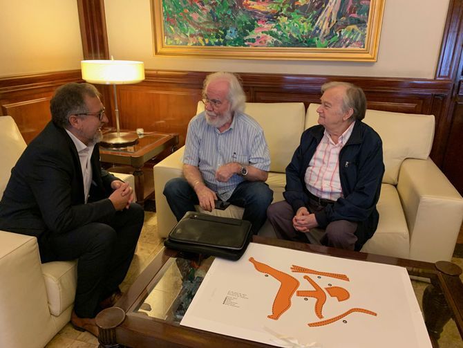 El presidente de la Diputación, José Martí, ha recibido en la mañana de hoy, 6 de septiembre, al presidente del Círculo de Bellas Artes de Castellón, Víctor García Castillo, quien ha acudido hasta el Palacio de la Plaza de las Aulas con otro integrante de la entidad, el pintor Manuel Gozalbo Tolentino, que fue durante más de 30 años funcionario en el Servicio de Restauración de la propia Diputación.