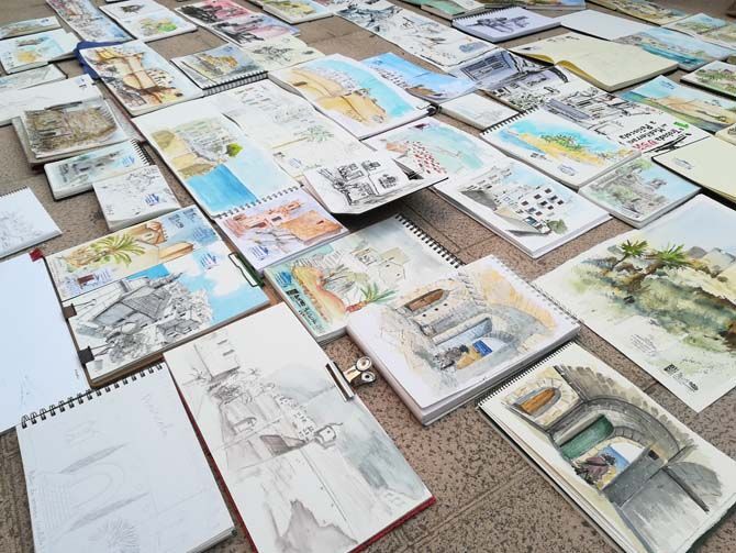 La iglesia de la Virgen de Ermitana, el acceso al Castillo, las angostas callejuelas que se enredan por toda la ciudad antigua, las viatas al mar; cualquier rincón ha conseguido inspirar las más de 400 ilustraciones realizadas en tiempo récord por los 200 participantes en el encuentro.