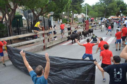 Los aledaños de la plaza de toros han acogido el primero de los tres encierros a la oropesina de estos festejos, declarados Fiesta de Interés Turístico Provincial. Como ya es tradición, los aficionados han colocado en mitad del recorrido el toldo, que han frenado a las reses tras su bajada, lo que ha arrancado el aplauso del público allí congregado tras las barreras. Por la tarde, ha sido el turno del concurso de ganaderías entre los hierros de Germán Vidal y Miguel Parejo, cuyos ejemplares han dado juego a los aficionados taurinos, y de la desencajonada del toro cerril de la peña Sense DNI, que ha optado este año por un astado de Javier Gallego, que ha sido embolado por la noche.