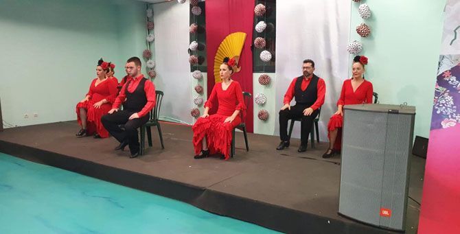 El edificio sociocultural acogía desde el viernes a la noche el recinto ferial de este nuevo evento de la agenda cultural de la localidad, que ha incluido pasacalles, actuaciones, bailes, flamenco, sevillanas, tapeo de cocina tradicional andaluza e, incluso, un aclamado desfile de moda flamenca.
