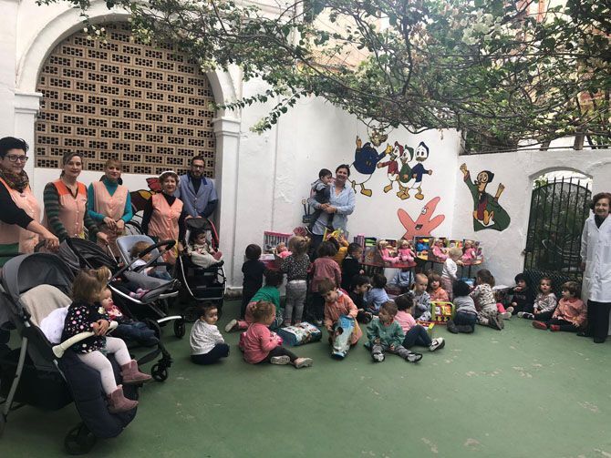 El presidente, José Martí, y al vicepresidenta, Patricia Puerta, hacen entrega de los lotes dentro de la campaña “Un niño, un juguete”, que este año ha duplicado el presupuesto para llegar a los 5.000 euros