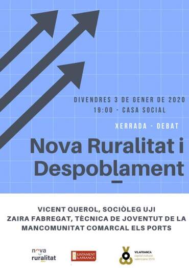 Ya entrando en el año nuevo, el viernes día 3 a las 19h se ofrecerá en la Casa Social una charla-debate sobre la nueva ruralidad y la despoblación en la que participarán Vicent Querol y Zaira Fabregat.