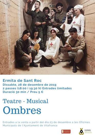 El sábado 28 en la ermita de Sant Roc a las 18h y a las 19.30h se podrá disfrutar con la obra musical “Ombres”. La duración es de 30 minutos y el precio de la entrada es de 5 euros.