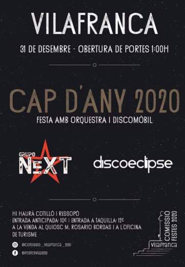 La esperada carrera de San Silvestre se celebrará en Vilafranca el 31 de diciembre por la tarde. A las 17h grandes y pequeños ataviados con divertidos disfraces navideños recorrerán el municipio. Por la noche, en el edificio Polivalente se despedirá al 2019 y se dará la bienvenida al 2020 con la orquesta Next y la discomóvil Eclipse.
