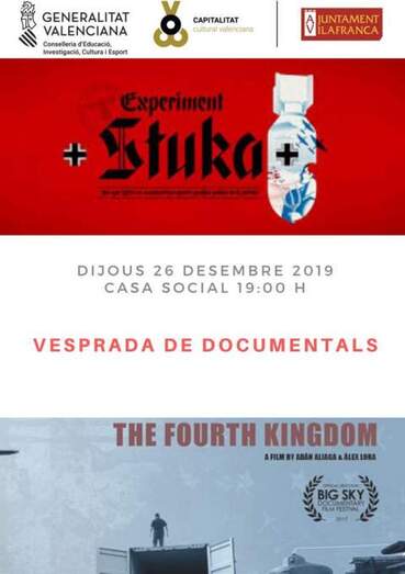 Asimismo, el jueves 26 a las 12h en la Casa Social se podrá disfrutar con el festival “Curts i Menuts” de cortometrajes infantiles para niños y niñas a partir de 2 años. Esa misma tarde, desde las 19h, también en la Casa Social, se podrán ver los documentales “Experimento Stuka” y “The Fourth Kingdom”.