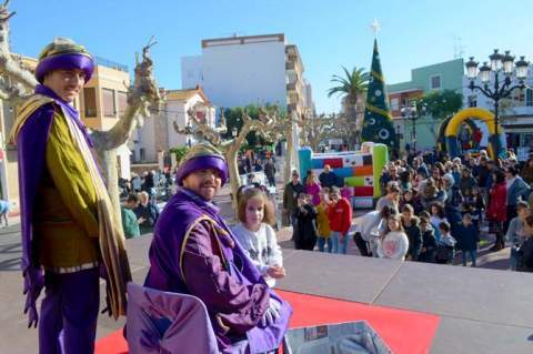 Después de una multitudinaria bienvenida y un 'aluvión' de fotografías, Melchor, Gaspar y Baltasar han subido a la carroza real y han partido, animados por los vecinos y visitantes, hasta la céntrica plaza Mayor, seguidos por la carroza del Ayuntamiento, dos de la agrupación local de 'dolçainers' y 'tabaleters' L'Embolic y el trenecito turístico. Aunque, antes, la cabalgata ha realizado una parada frente a la iglesia de San Jaime, donde sus Majestades los Reyes Magos han realizado la tradicional ofrenda y adoración al niño Jesús.