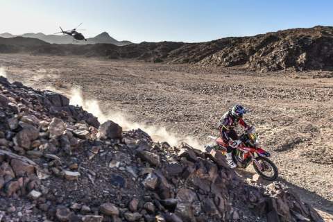Esta mañana, los pilotos han recibido nuevamente los libros de ruta unos minutos antes de la salida, pero ello no ha sido impedimento para Ricky Brabec, el estadounidense del Monster Energy Honda Team para apretar a fondo el puño del gas de su Honda CRF450 RALLY y marcar los mejores tiempos en los diferentes waypoint de la especial hasta llegar de nuevo a la meta de Neom. El californiano lidera la provisional de la carrera.