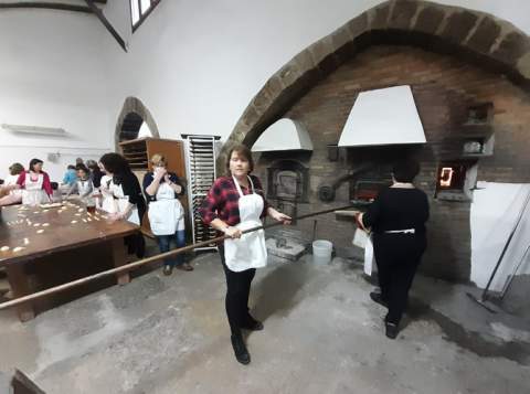 Mientras los miembros de la Santantonà fueron a buscar la leña que vestirá la imponente barraca, las mujeres se repartieron entre los dos hornos de Forcall para amasar.