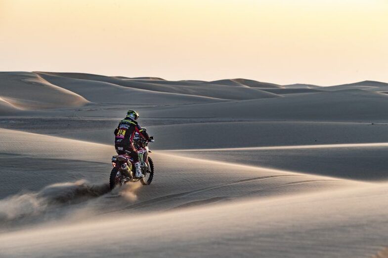 Joan Barreda, Ricky Brabec y Kevin Benavides han ocupado el podio de la etapa de hoy. Los tres pilotos del Monster Energy Honda Team han finalizado hoy en las tres primeras posiciones de una etapa que se ha visto recortada por culpa de las inclemencias meteorológicas. La décima etapa del Rally Dakar, inicialmente de 534 kilómetros de especial cronometrada, dividida en dos sectores, se ha visto reducida a tan sólo el primer sector cronometrado, ya que, tras la neutralización han desviado directamente a los pilotos al vivac de Shubaytah al detectar fuertes rachas de viento en el siguiente tramo de especial que podían poner en dificultad la seguridad de los participantes.