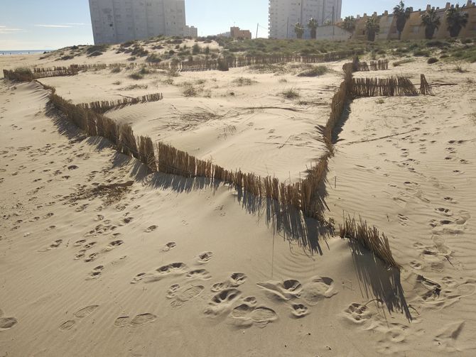 Durante 2018 y 2019 la Fundación Global Nature (FGN) llevó a cabo un proyecto de restauración de dunas y malladas en 10 puntos de las provincias de Valencia y Castellón, financiado por Fundación Banco Santander (FBS). Las dunas estabilizan el terreno y ayudan a la retención sucesiva de más sedimentos permitiendo su crecimiento. Su destrucción alarmante en zonas de playas turísticas provoca, como se ha visto durante el temporal Gloria, que el agua pueda llegar a inundar calles de las urbanizaciones costeras.