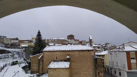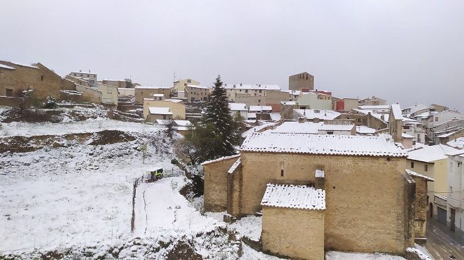 Unos 5 centímetros de nieve han cubierto hoy de blanco el municipio de Portell.