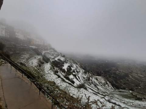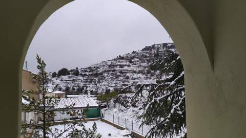 El municipio de Ares del Maestrat se ha levantazo hoy con una ligera capa de nieve.