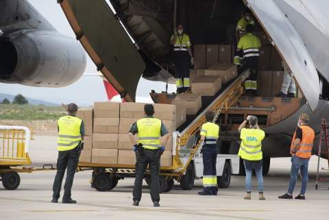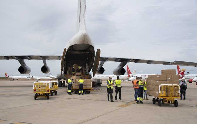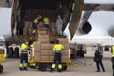 Aterriza en el aeropuerto de Castelló el avión con las 370.000 mascarillas adquiridas por los ayuntamientos bajo la coordinación de la Diputación