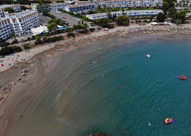 La vigilancia con drones confirma el respeto a la distancia de seguridad y control de aforos en las playas de Alcossebre