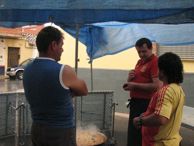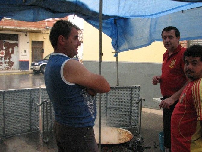 El cocinero Jaime Cortés volvió a ser el encargado de velar por el buen comer de todos los asistentes y una vez más, no defraudó a nadie y se pudo degustar una paella valenciana riquísima hecha a fuego de leña a pesar de la fuerte lluvia que caía en ese momento.