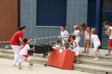 Los más de doscientos niños que disfrutan de las actividades ofrecidas por l’Escola d’Estiu de Alcalà y Alcossebre tomaron parte en la divertida versión de los sanfermines organizada para ellos.