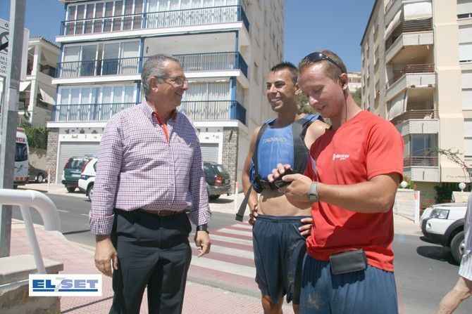 El alcalde de Oropesa del Mar, Rafael Albert, y el Intendente Jefe de la Policía Local, Clemente Rodrigo, han supervisado hoy el desarrollo de un simulacro de rescate ue ha tenido como escenario la Playa de La Concha.