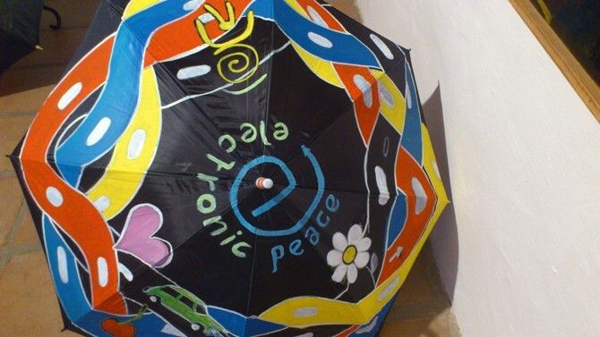 Al mismo tiempo, estos artistas plásticos se dedicaron a pintar un paraguas alusivo al fomento de la paz cada uno de ellos que sirvieron para adornar el escenario y que están expuestos hasta el 30 de agosto en el Museu d´Art Contemporani.