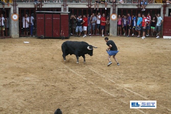 [Img #10466]Para hoy sábado los toros continuaron con los tradicionales encierros matutinos, así como uno muy especial dedicado a los más pequeños de la localidad. Los niños disfrutaron de una mañana de juegos, encierros y recortes a pequeña escala, en la que ellos fueron los protagonistas de los mejores recortes, sintiéndose toreros por unas horas.
