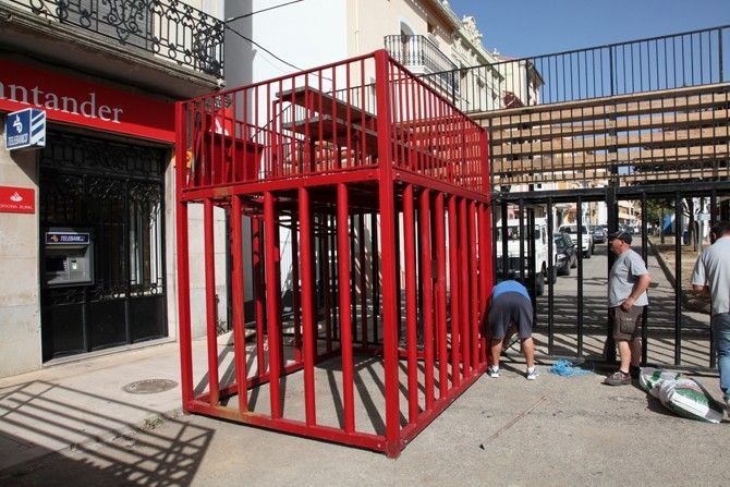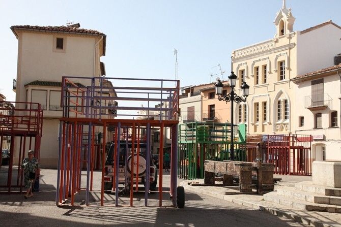 El matí del primer divendres de les Festes de Vilafranca es dedica a situar els cadafals al recinte taurí de la Plaça d'En Blasc. S'han posat un total de 37, els mateixos de l'any passat. Les altes temperatures, al voltant dels 37 graus, han fet suar als grups d'amics que esperaven l'arriba dels tractors per colocar els cadafals al seu lloc corresponent.
