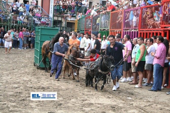 El 8 de agosto tenía lugar la construcción del recinto taurino, que al día siguiente ya comenzó a albergar las diferentes exhibiciones. Comenzaba la actividad el 9 de agosto con la entrad de Bous de La Ribera, que también se encargaron de la exhibición de la tarde, mientras que al día siguiente, 10 de agosto, eran los toros de Germán Vidal los que hacían lo propio en la entrada y exhibición de la tarde. Este día fue el de más intensa actividad taurina, con la desencajonada de tres toros cerriles de la ganadería de Germán Vidal, Tiburón, n° 7 guarismo 08, Sultán, n° 41 guarismo 10 y Perezoso n°21 guarismo 09, patrocinado este último por la Associació de Jovens de Cabanes.