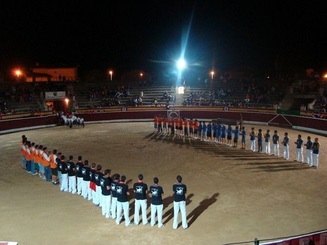 Per la nit, també a la Plaça de Bous, es va fer una exhibició d'emboladors amb els bous de El Quintanar de Zalamea de la Serena (Badajoz) que van eixir al concurs de retalladors. Les quadrilles participants van ser Passió pel Bou de Morella, Benassal-Iglesuela, Quebrà d'Onda, Cantavieja i Vilafranca. Com en anys anteriors, hi havia un trofeu al millor "rabero" que va ser per a David Colom "Sarrompero" de Vilafranca.![[Img #11286]](upload/img/periodico/img_11286.jpg)