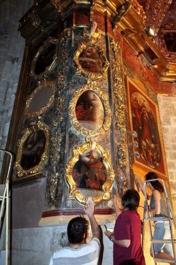 Cuatro restauradores, coordinados por la directora del taller, Ana Cañizares, han trabajado intensamente durante los últimos dos meses. Cabe recordar que las pinturas restauradas han permanecido expuestas en el Museu de Belles Arts de Castelló. De este modo los castellonenses han conocido la riqueza pictórica del Altar, datado en el siglo XVIII. El Altar lucirá en las celebraciones que se vivirán en la Basílica Arciprestal con motivo del 53 Sexenni. ![[Img #11469]](upload/img/periodico/img_11469.jpg)