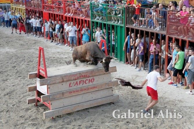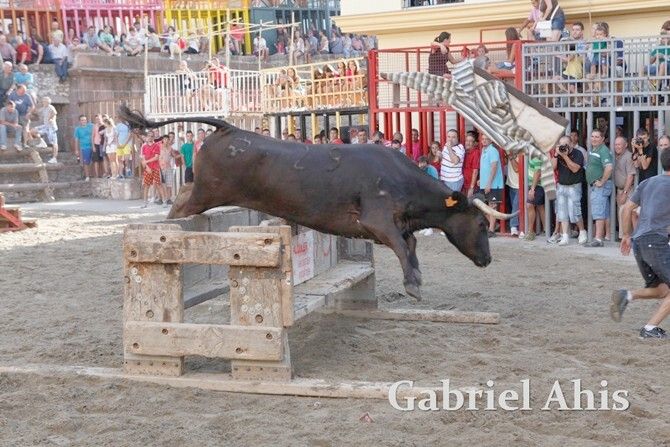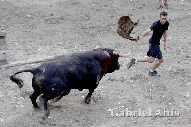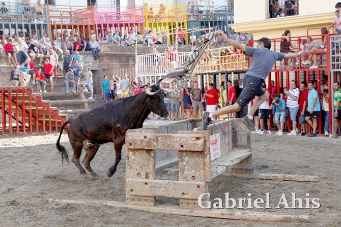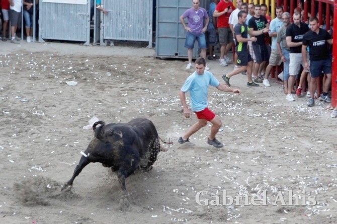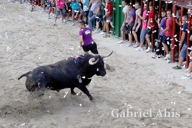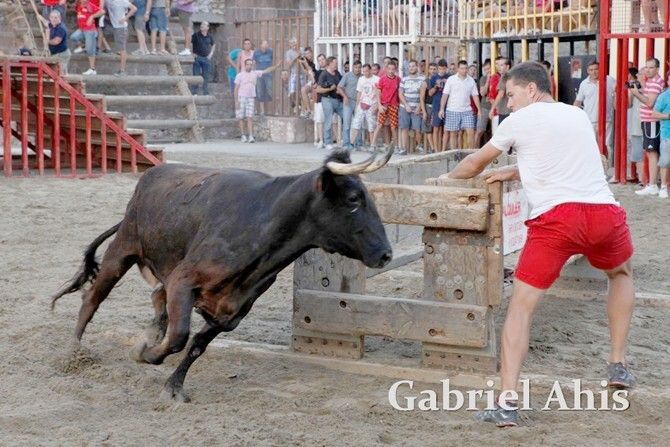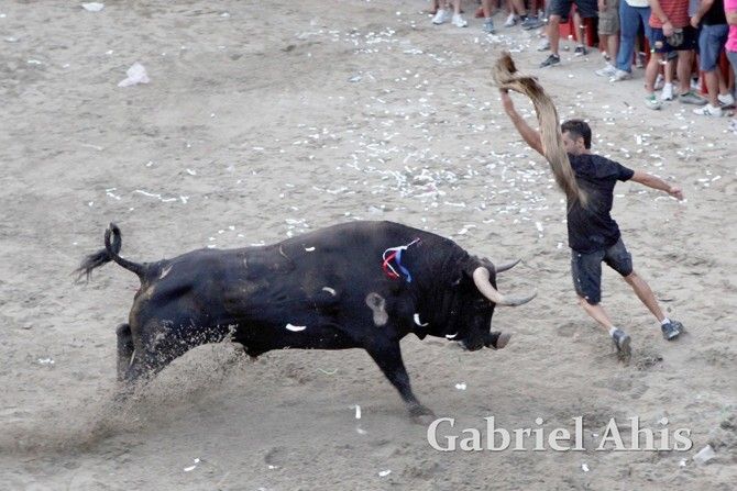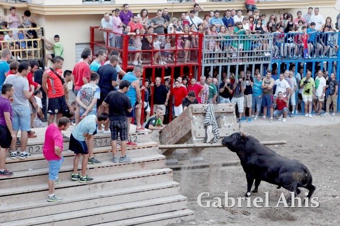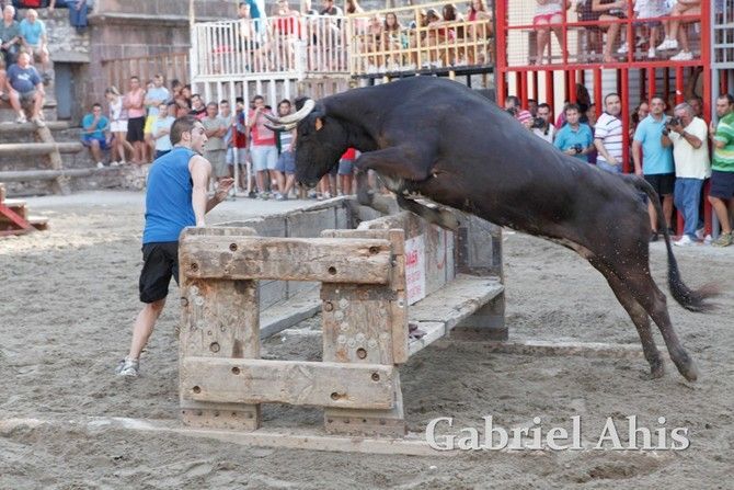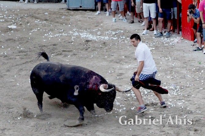 Por la noche fue el turno de los toros embolados. En primer lugar se emboló un toro de Tomás Alejandro “Tomaset”, mientras que a continuación fue el toro cerril desencajonado por la tarde el que se emboló.