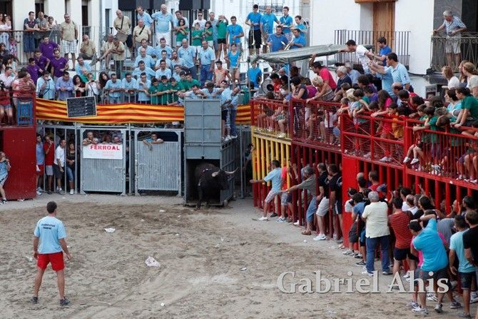 La segunda jornada del Concurso de Ganaderías de las fiestas de Vilafamés ha tenido como participante al hierro de La Paloma de Jalón, Alicante. Los aficionados han disfrutado de una nueva tarde de toros en el programa festivo, que por la mañana ofreció la entrada de las reses de la ganadería Jaume Tárrega de Vilafamés, que fueron probadas a continuación.