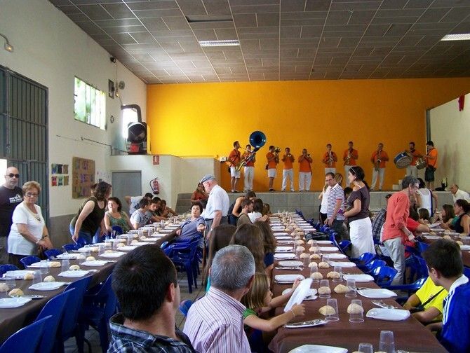 Casi 300 vecinos se reunieron en el local de fiestas para celebrar esta comida de hermandad, tras casi una semana de celebraciones. La jornada continuó con la animació de la charanga de Castellote, que dio paso a los disfraces y una discoteca móvil. Antes los vecinos habían desmontado las barreras.