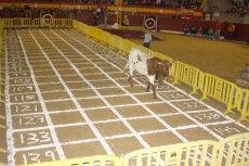 Por la tarde, además de la exhibición de toros y vaquillas de D.Miguel Parejo que estaba prevista, la Plaza de Toros, abarrotada de gente, presenció la desencajonada de los tres toros bravos que el pasado viernes, día del Pilar, tuvieron que ser suspendidos a causa de la lluvia: Corsario, de la ganadería Herederos excelentísimo Conde de Maza, Polizón, de Don Germán Vidal de Cabanes, y Bailador, también a cargo de Vidal. Previamente al espectáculo taurino, Reina y Damas entraban en calesa y vestidas con indumentaria campera a la Plaza, haciendo, si cabe, todavía más bello el espectáculo.