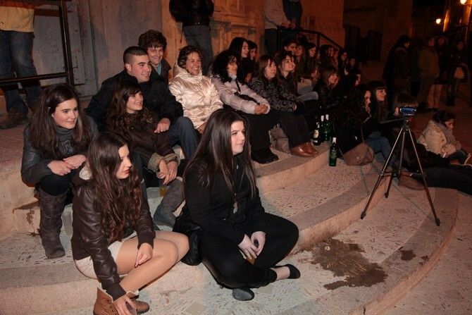 La plaza de Albocàsser se llenó de familiares y curiosos que no quisieron perderse la tradición. Y es que se trata de una de las fiestas señaladas de la localidad de l'Alt Maestrat. Primero los quintos cantaron delante de la iglesia parroquial. Desde allí hicieron lo propio ante la casa del alcalde del municipio, Antonio Querol, en la casa del párroco, delante del cuartel de la Guardia Civil y así sucesivamente ante las casas de las chicas solteras del pueblo. En algunas viviendas se ofreció a la comitiva un refresco para quintos, músicos y acompañantes.
