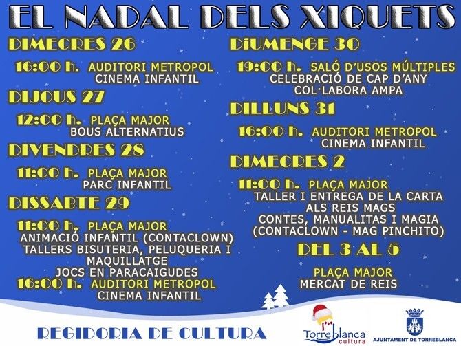 La Concejal de Cultura y Fiestas de Torreblanca, Inma Segura, ha dado a conocer la amplia programación de actos culturales y lúdicos que se han organizado para las fiestas navideñas.